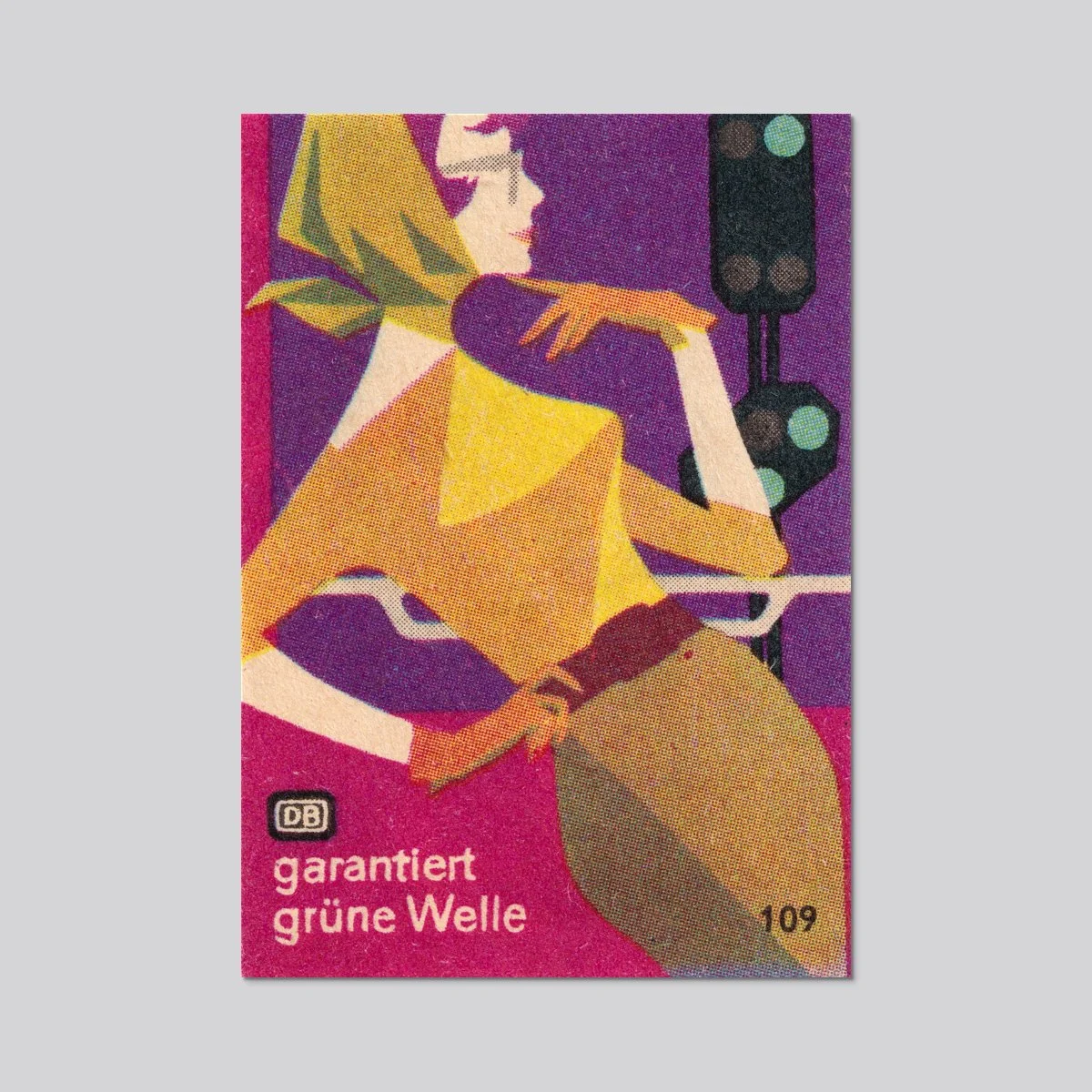 Details: This 1962 matchbox label advertises the Deutsche Bundesbahn (DB), the West German national railway. The illustration also appeared as part of a poster series - the poster version is signed 'Strom-Heigl'.
