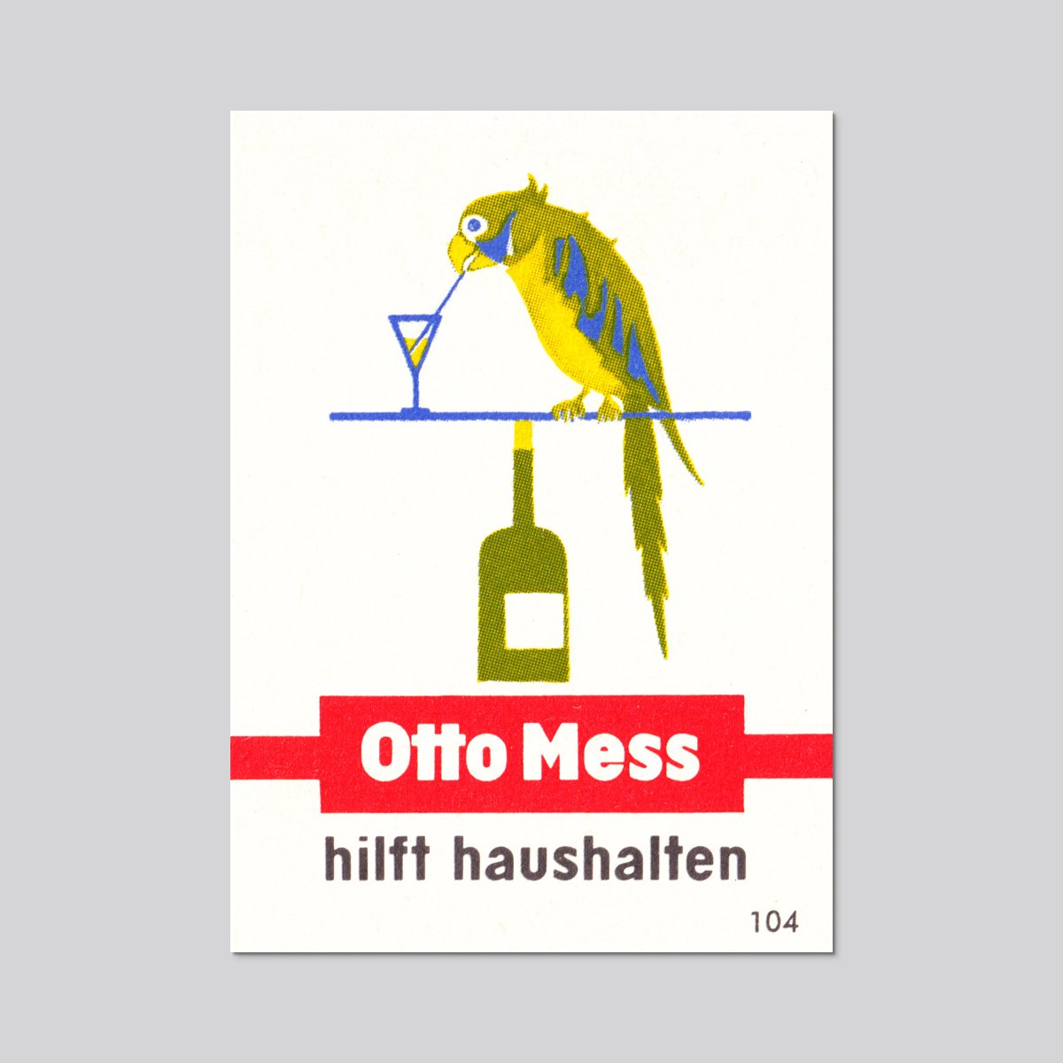 Details: These matchbox labels were created for German supermarket Otto Mess - they are undated but look c.late 1960s. The artist is uncredited.