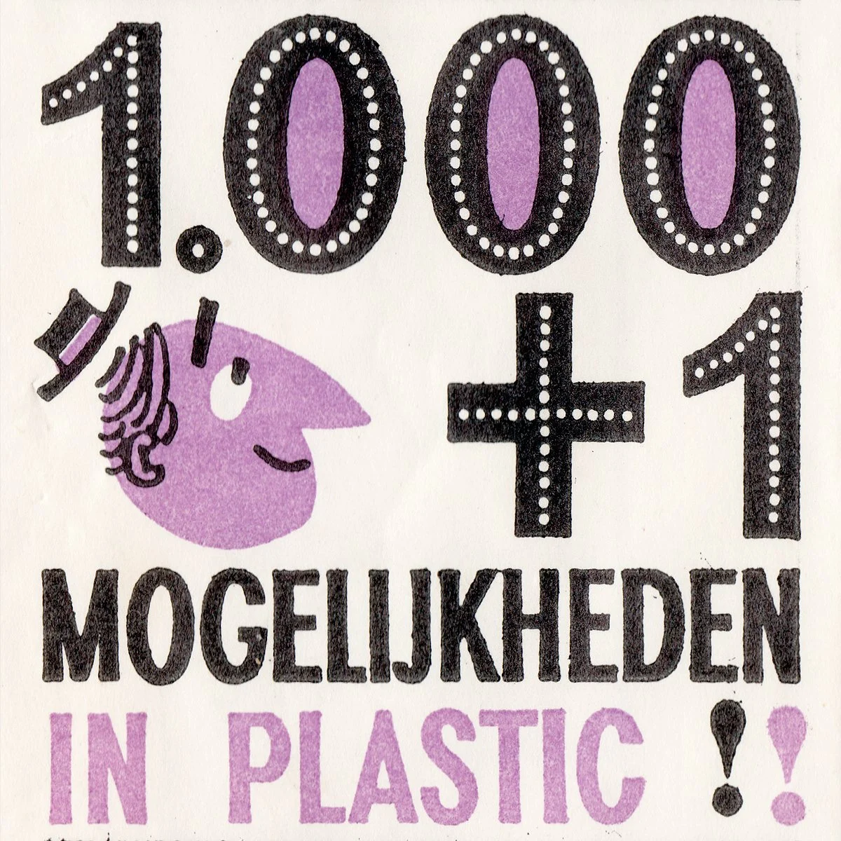 Details: This c.1960s Dutch sugar packet promotes Shell Carlona P, a material made from polypropylene. The text translates to read ‘1000 + 1 possibilities in plastic’, likely promoting the versatility of polypropylene plastic products. The artist is uncredited.